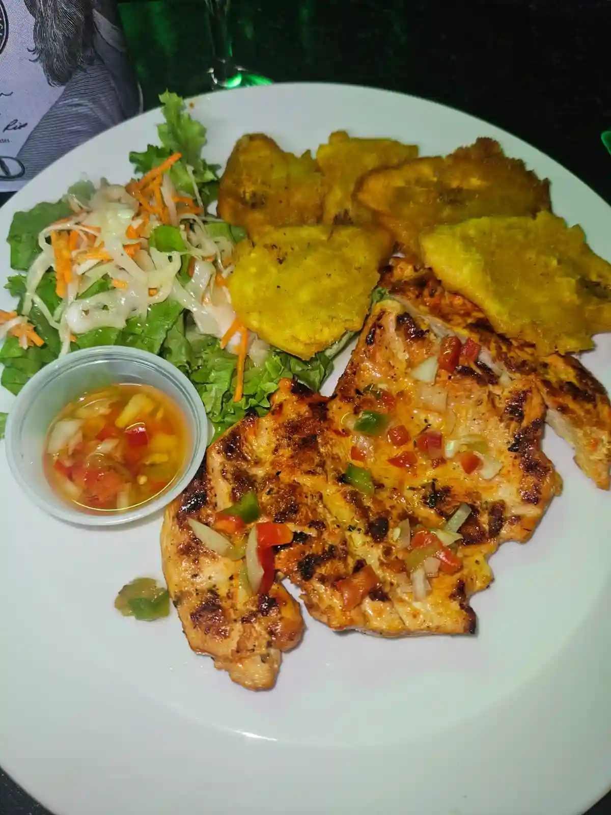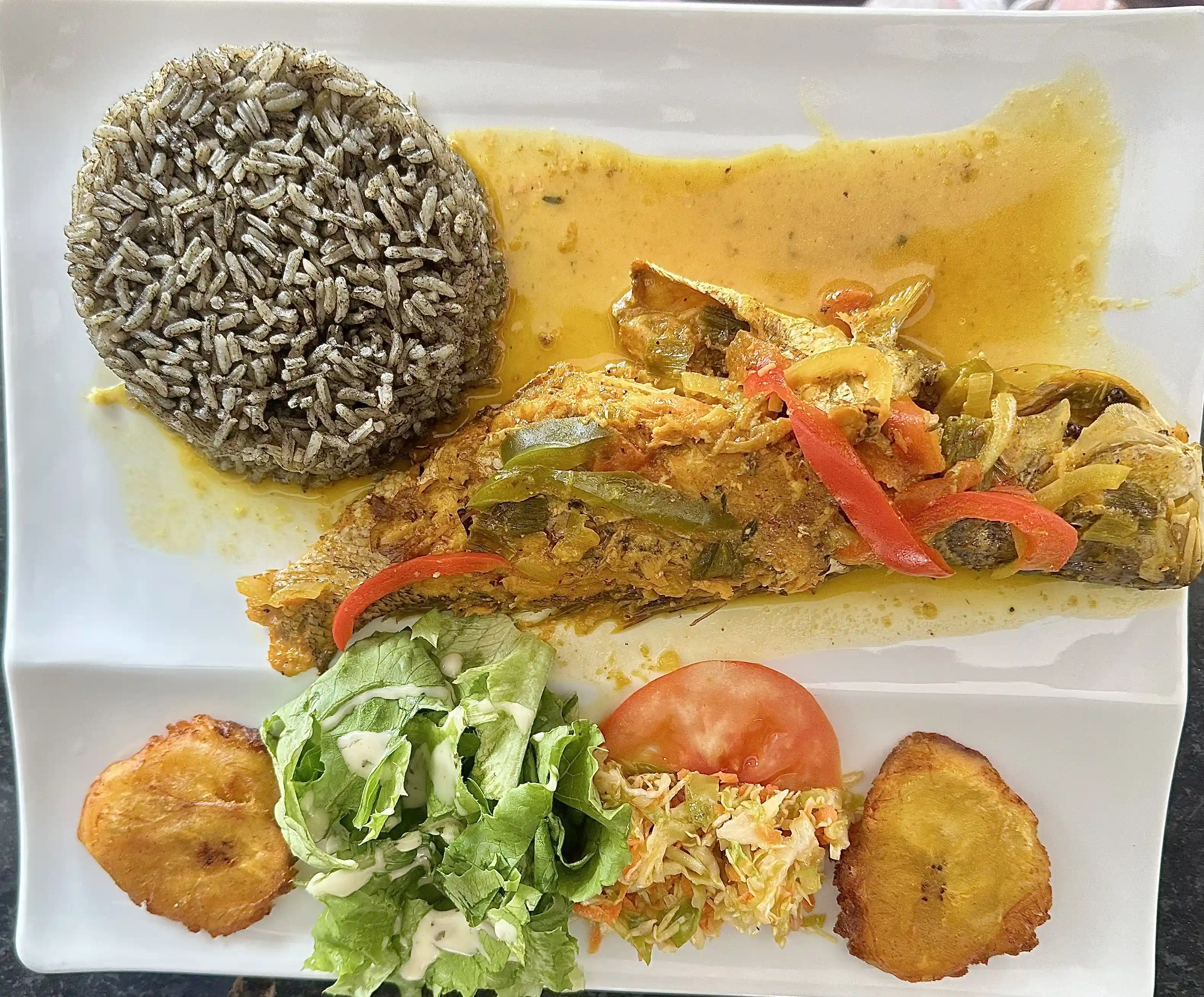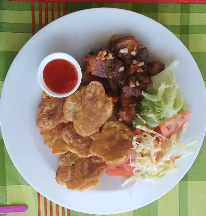 Pork or Chicken Griot, Choice of Side Dishes, Salad