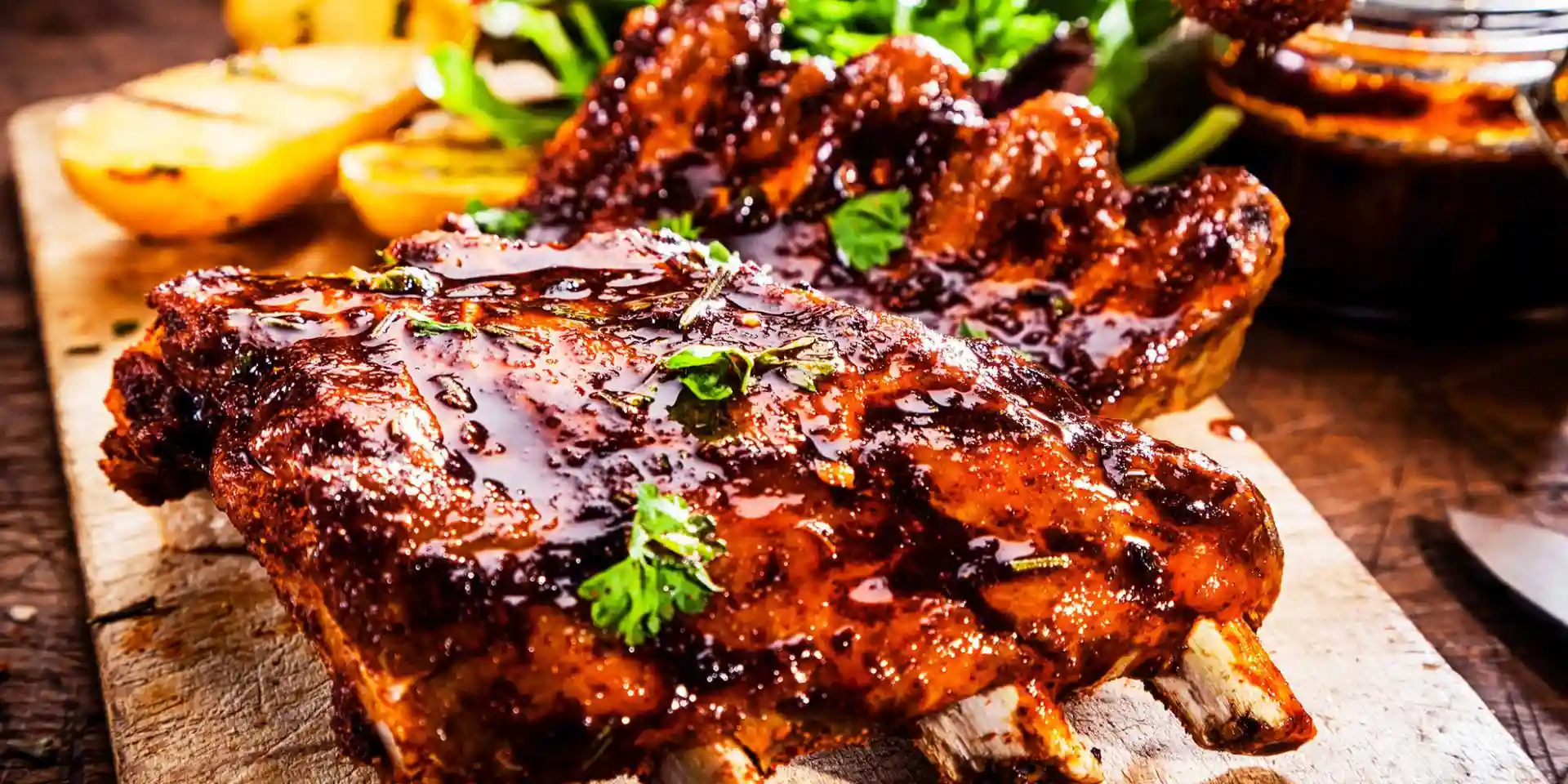 Ribs with BBQ Sauce, Choice of Side Dishes, Salad
