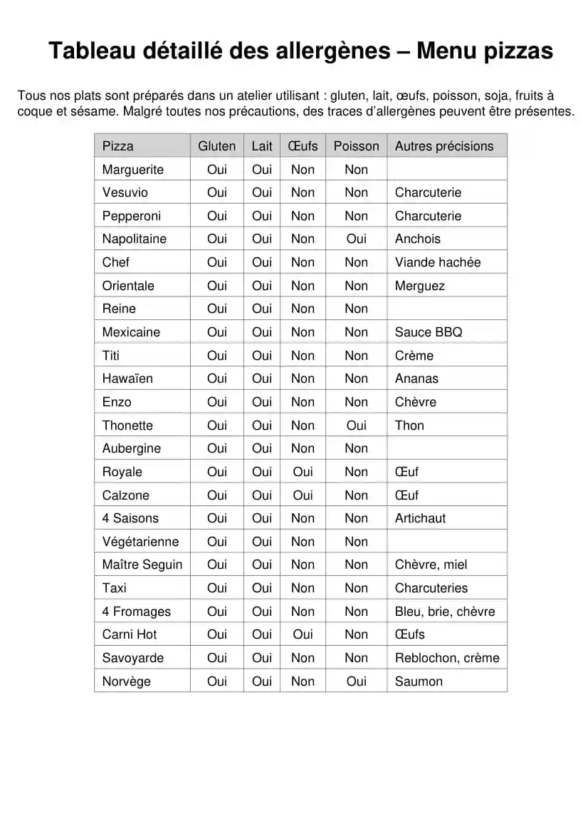 * The list of allergens is available here