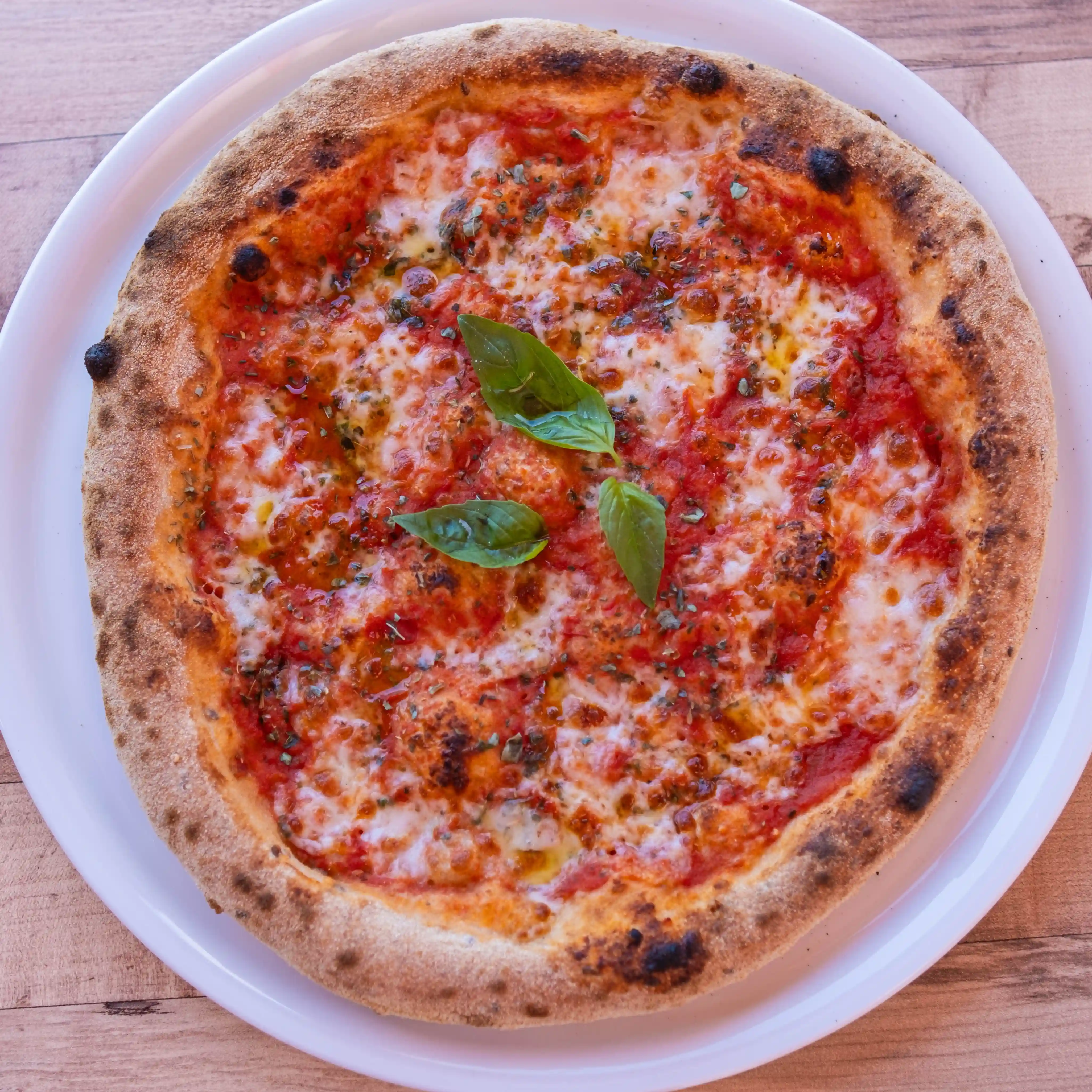Tomato sauce, mozzarella fior di latte, Basil, After cooking: Oregano, Extra virgin olive oil drizzle