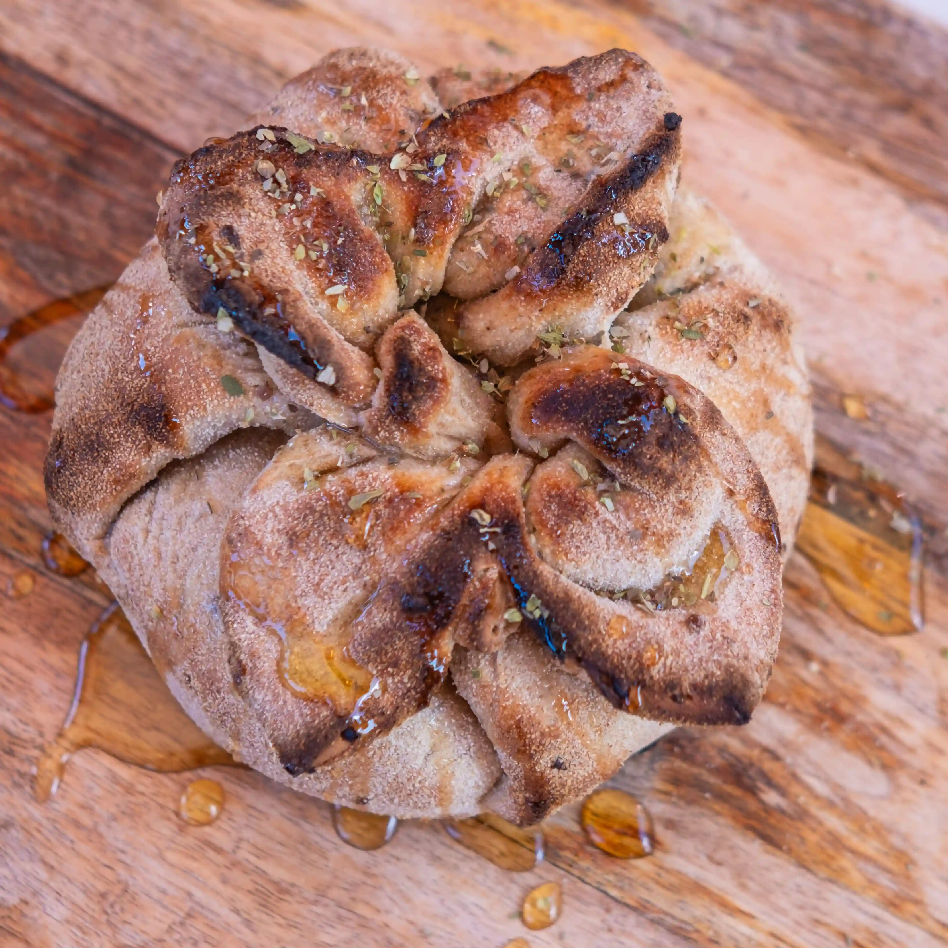 Creamy Camembert with honey and walnuts, roasted in pizza dough