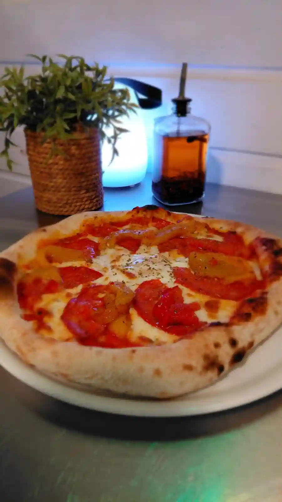 Tomato base, Mozzarella, Chorizo, Pickled peppers, Egg, Oregano