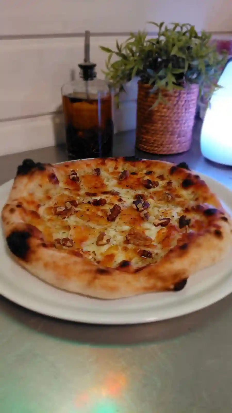 Cream base, Mozzarella, Goat cheese, Honey, Walnuts, Oregano