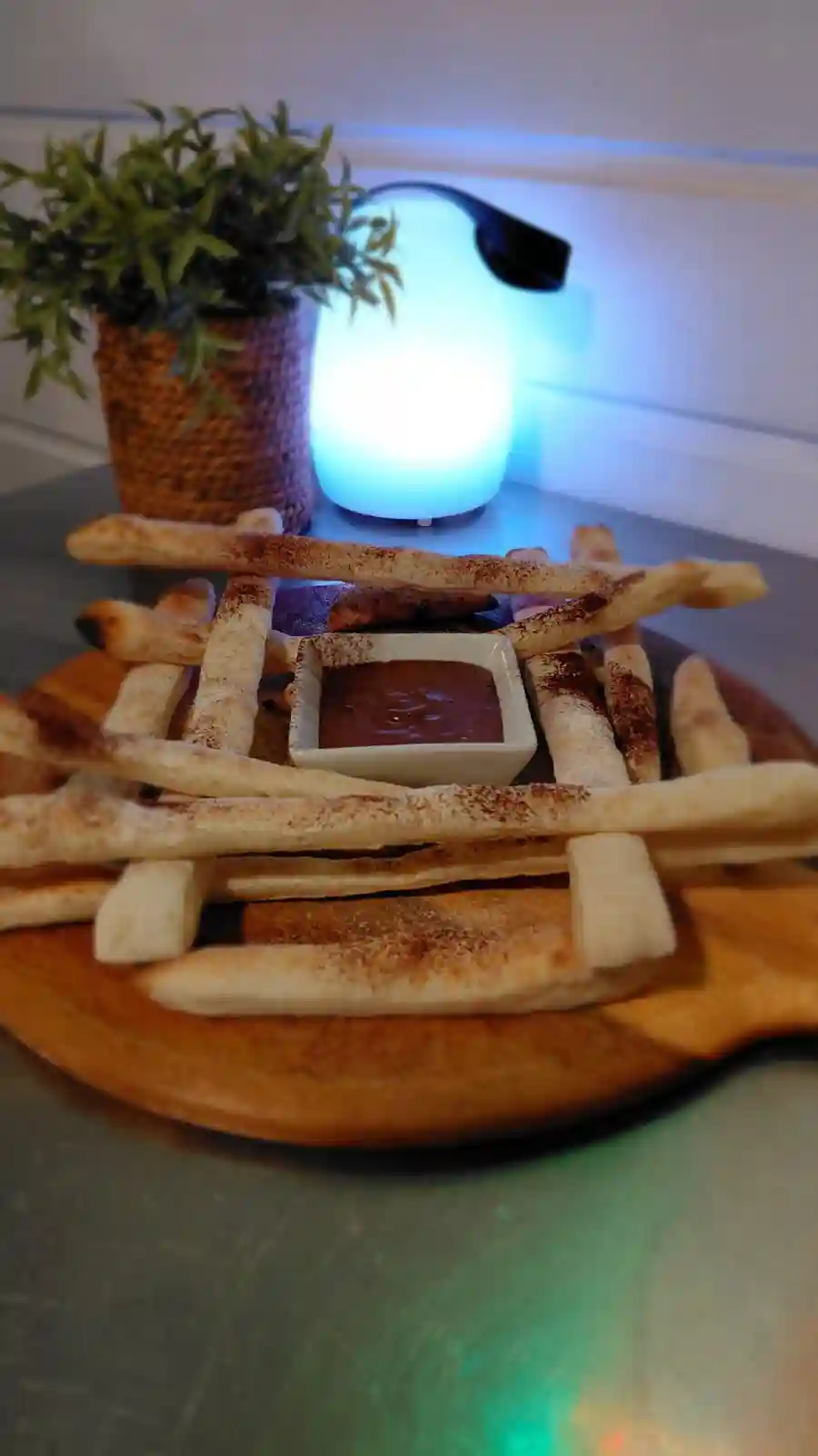 Pizza dough Mikado, Icing sugar, Hot Nutella